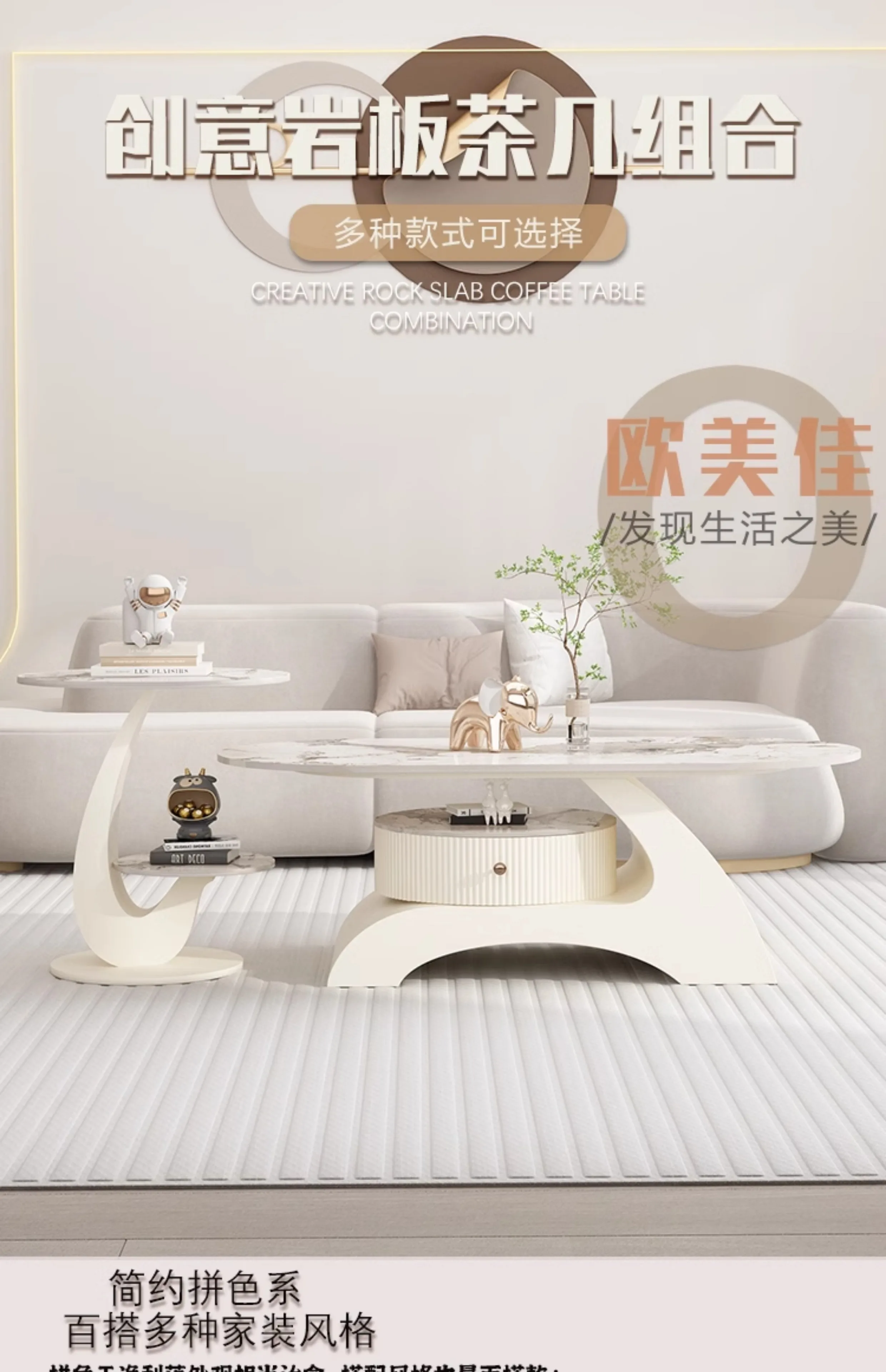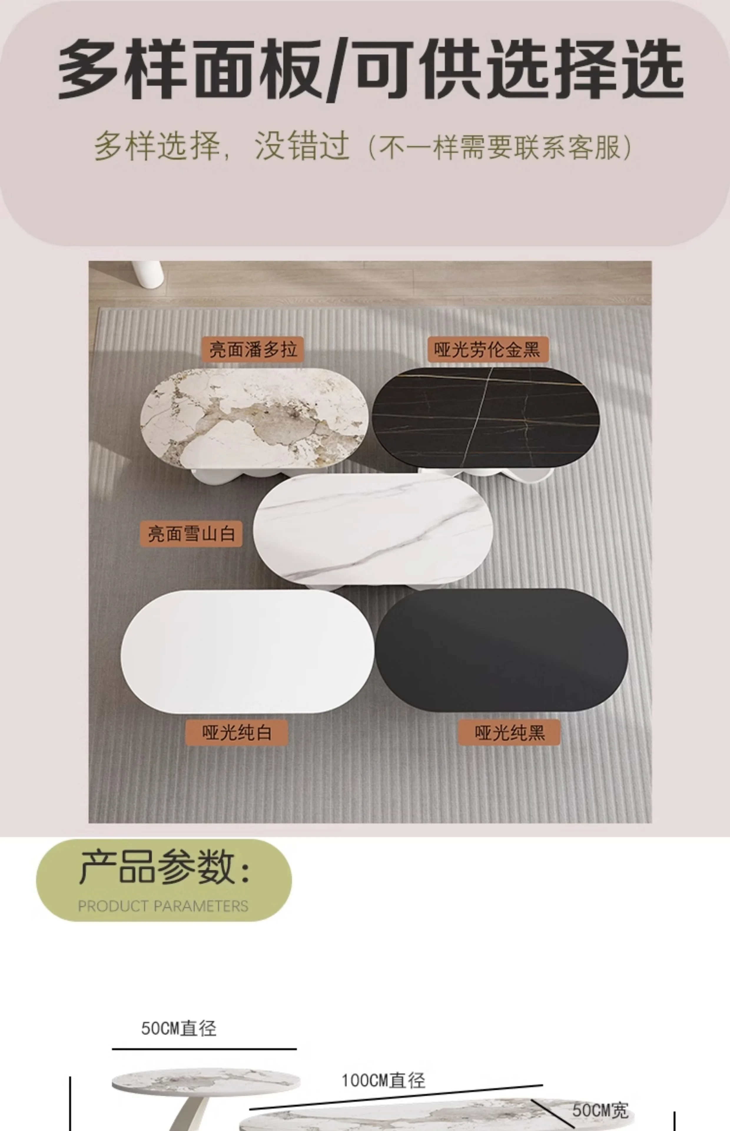 - Coffee table countertop shape: oval